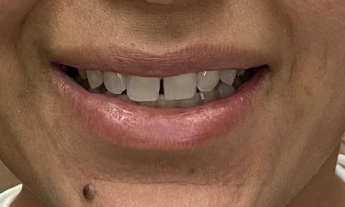 Crowns done on front teeth to close spaces and improve esthetics